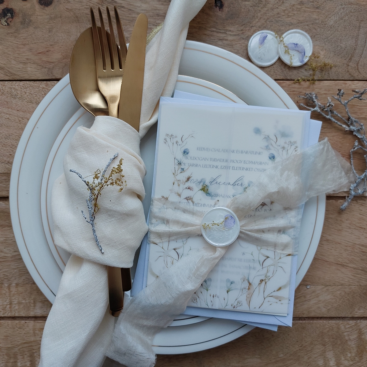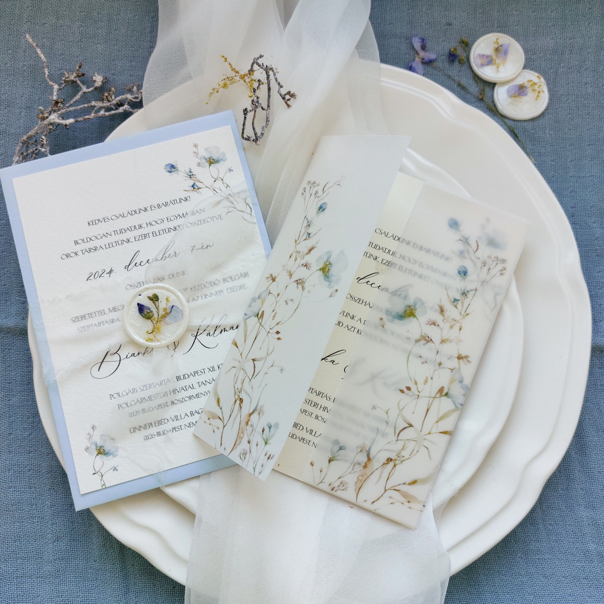 A meghívószett tartalma: